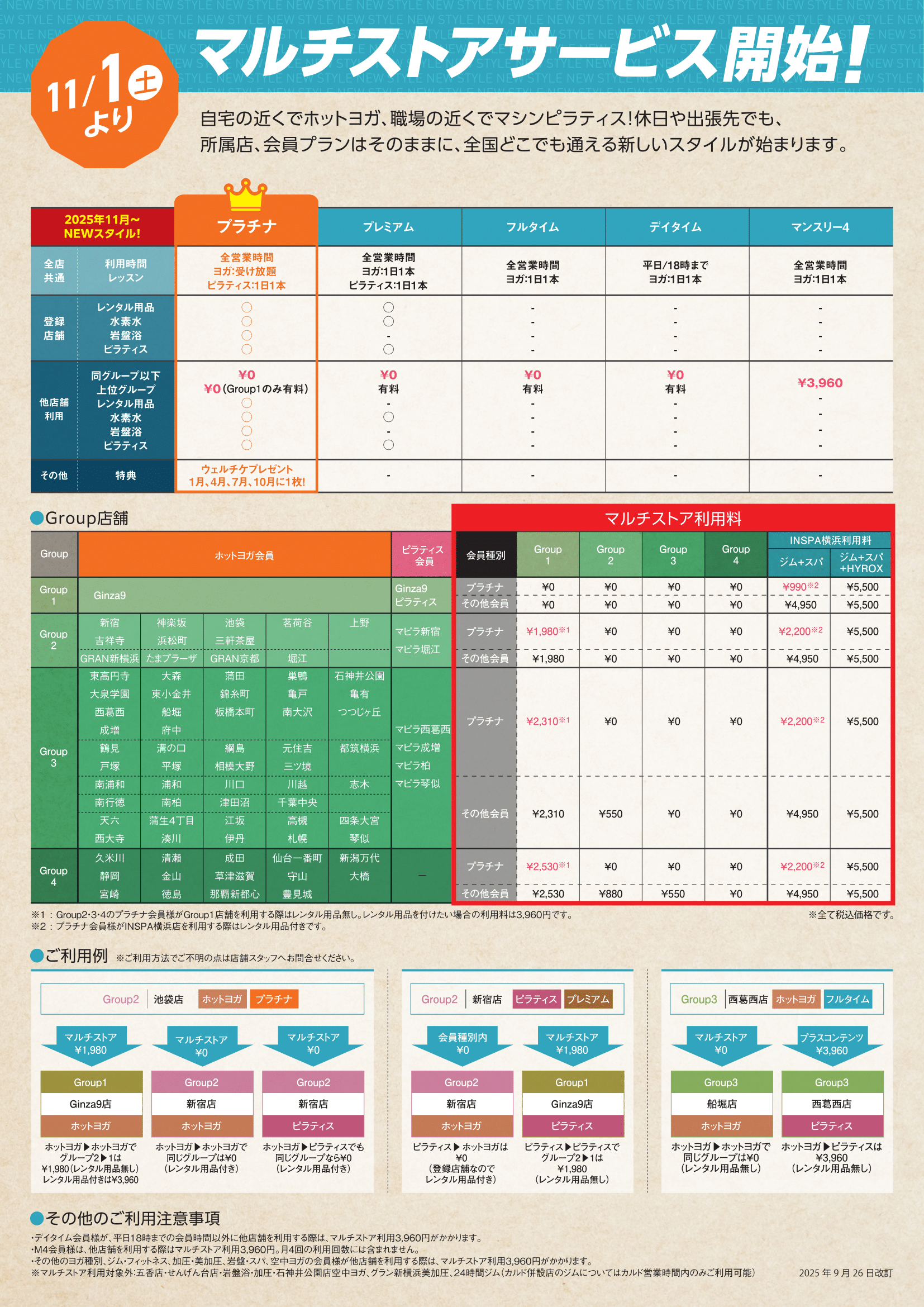 □マシンピラティス・ホットヨガ:各1日1本受講可能