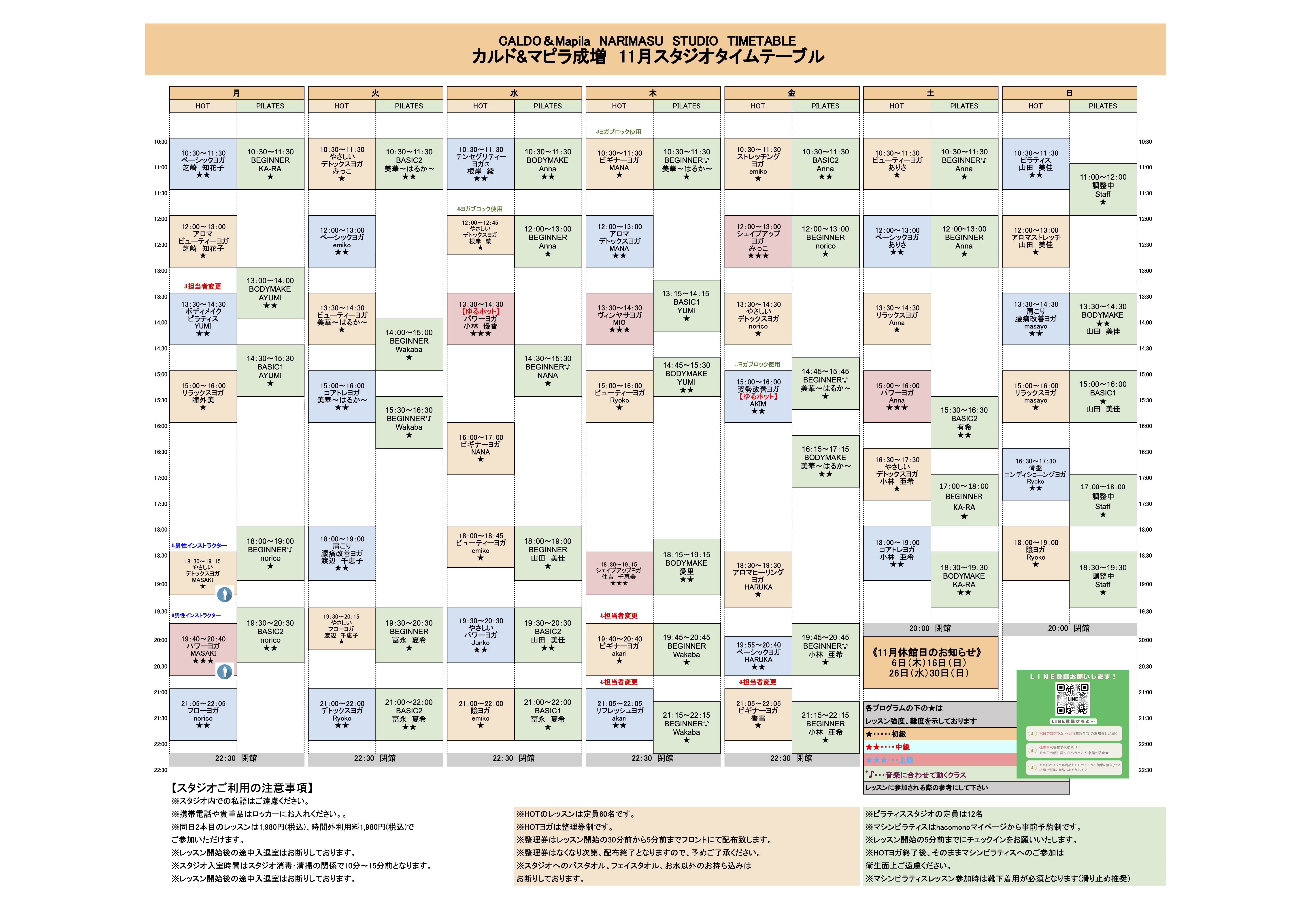 □ホットヨガとマシンピラティス、どちらも1日1回受講可能