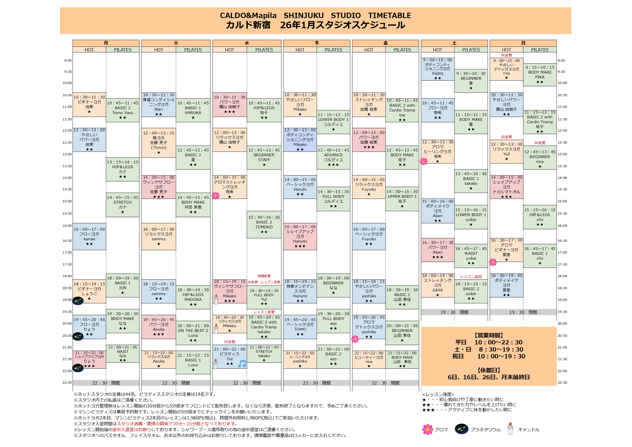 | レッスン受講数 | マシンピラティス:1日1本 ホットヨガ:受け放題※他店舗利用時も同様 |